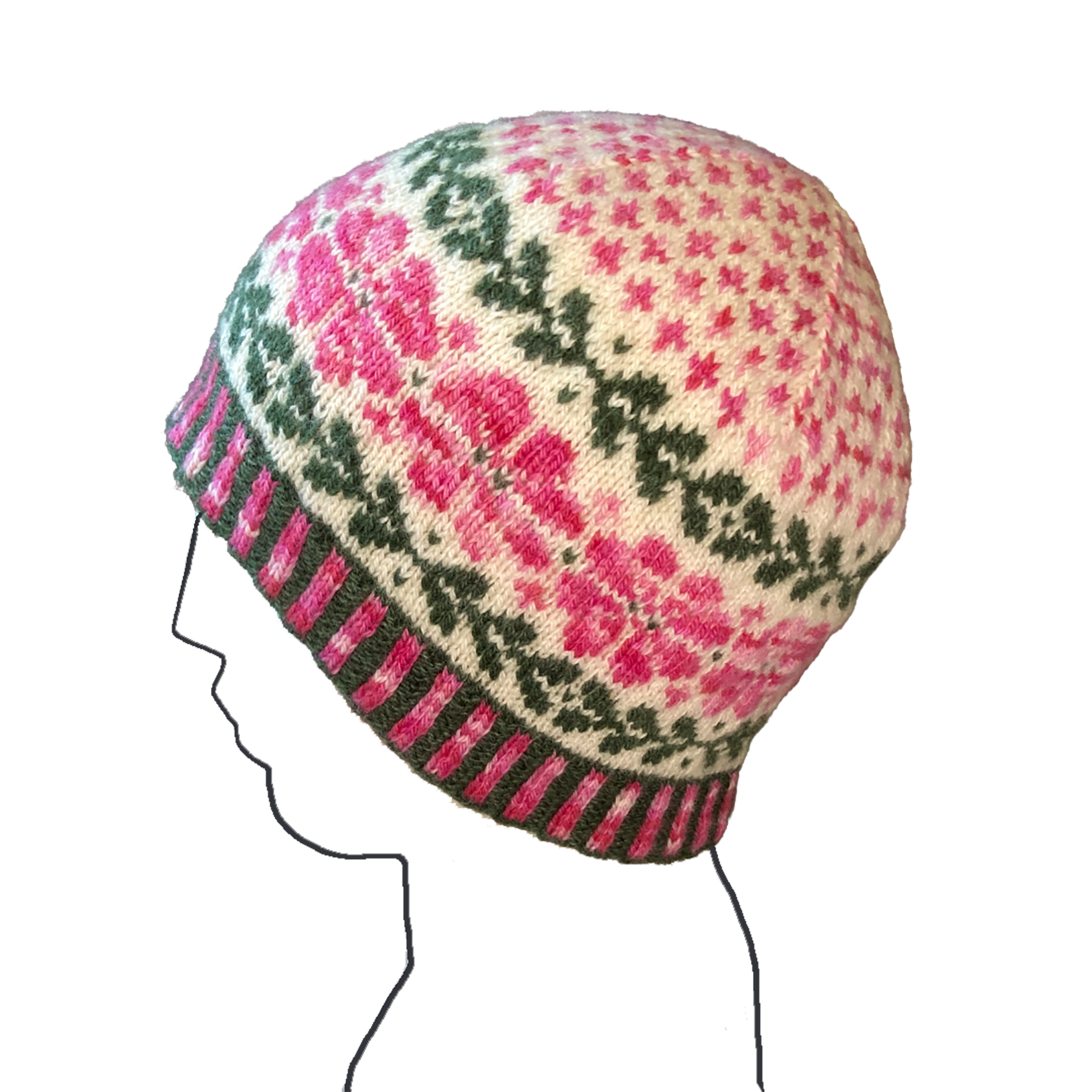 Körsbärsblom är en flerfärgsstickad mössa inspirerad av körsbärsblommans flyktiga skönhet. Ett enkelt och roligt mönster att sticka, perfekt för dig som gillar diagramstickning och vill skapa ett tidlöst, naturinspirerat plagg.